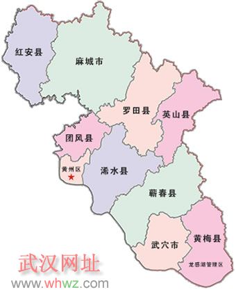 黃岡地處湖北省東部、大別山南麓、長江中游北岸,京九鐵路中段?,F(xiàn)轄一區(qū)(黃州)、二市(武穴、麻城)、七縣(紅安、羅田、英山、浠水、蘄春、黃梅、團(tuán)風(fēng))和一個縣級龍感湖農(nóng)場,版圖面積1.74萬平方公里,總?cè)丝?30萬。