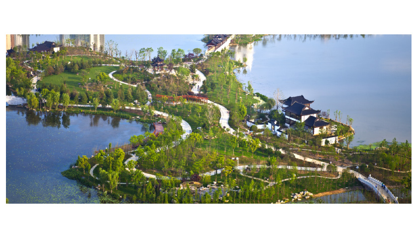 一橋——沙湖大橋;一堤——如橫琴狀臥于沙湖之中的琴堤,將歷史人文區(qū)劃分為內(nèi)、外兩湖;三片——根據(jù)功能需要將公園分為原樸、古典、現(xiàn)代三大風格片區(qū);十景——創(chuàng)新再現(xiàn)舊“沙湖十六景”中的十景,即新“沙湖十景”:泉亭松韻、琴堤水月、東山殘碣、雁橋秋影、蘭嶺香風、石壁龍湫、雁山晨鐘、寒溪漁夢、沙湖放棹、鷗島浴波。